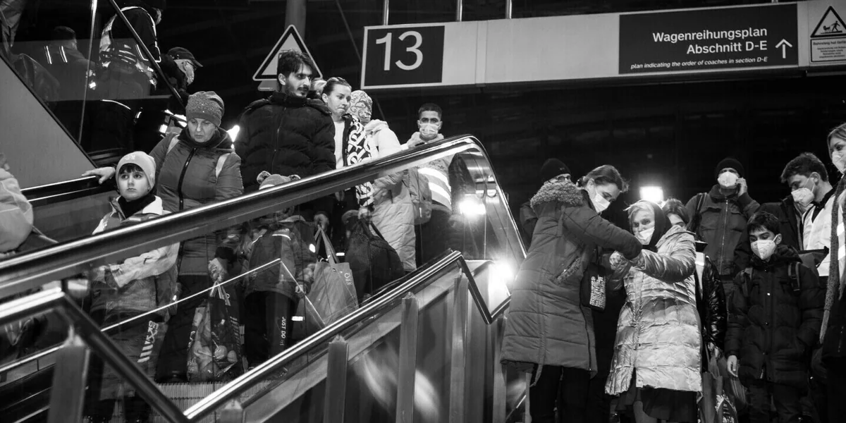 Ukrainer*innen am Berliner Hauptbahnhof im März Foto: Annette Hauschild/Ostkreuz