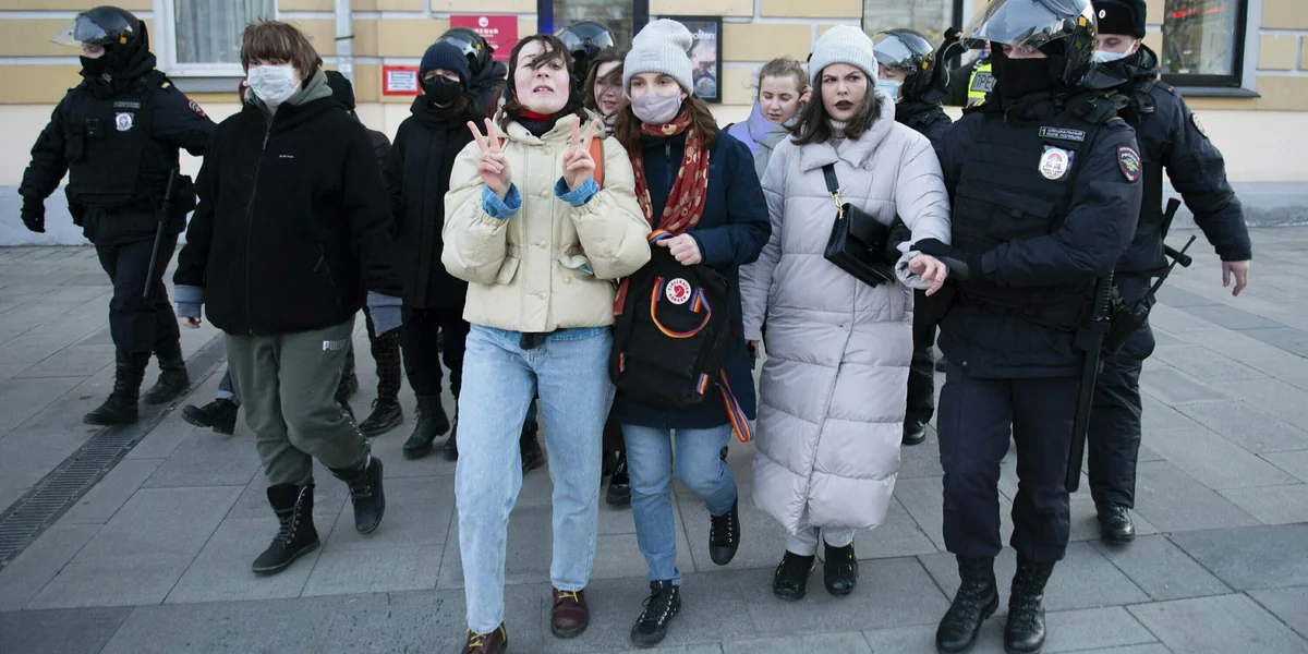 Dennoch versammeln sich jeden Abend Tausende Menschen in Moskau, Sankt Petersburg, Jekaterinburg und anderen Städten quer durchs Land, um gegen den Krieg zu demonstrieren. Jeden Abend nehmen Spezialkräfte der russischen Polizei Hunderte von ihnen fest. Allein am Sonntag waren es laut der Bürgerrechtsorganisation OWD-Info mehr als 2.000. Die russische Generalstaatsanwaltschaft drohte mit Verfahren wegen Staatsverrats, sollten russische Bürger „ausländischen Staaten mit jeglicher beratender Tätigkeit helfen, die gegen die Sicherheit Russlands gerichtet ist“. Darauf stehen 20 Jahre Freiheitsentzug. Selbst Menschen, die eine ukrainische Flagge in ihr Fenster hängen, werden von der Polizei abgeholt.
