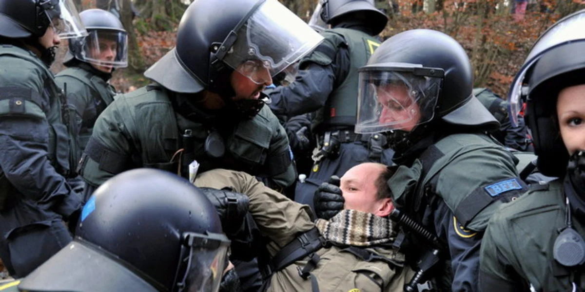 Wer den Weg bis zur mehrere hundert Meter entfernten Gefangenenssammelstelle dennoch nicht laufen will, muss mit Schmerzen rechnen: Mit umgeknickten Armen, mit Griffen ins Gesicht oder damit, über den Schotter geschleift zu werden. Die meisten beugen sich dem Druck und gehen freiwillig mit. Dennoch ist die Räumung erst morgens um sieben abgeschlossen.