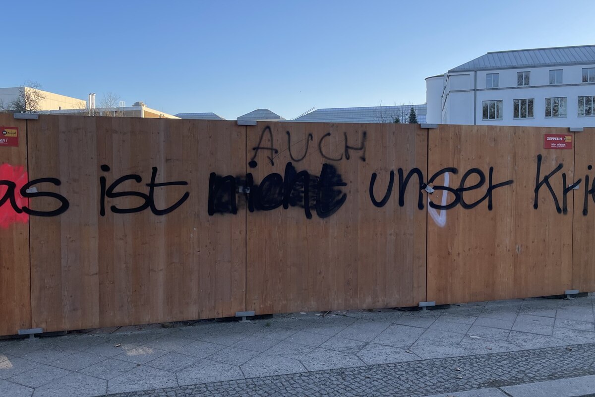 Eine Stunde Zugfahrt vom Büro von Vitsche entfernt, zeigt sich die Parole „Das ist nicht unser Krieg“ im brandenburgischen Erkner nicht nur in Gestalt von Graffiti, sondern eines Woche für Woche stattfindenden Rituals. Jeden Montagabend mobilisiert eine Bürgerinitiative zum Marsch durch die Straßen der Kleinstadt. Die Demonstranten tragen Transparente mit Friedenstauben, russische Flaggen, Plakate Parolen gegen die Nato. Neben den Friedenstauben und den Forderungen nach einem Ende der Gewalt sind auch die Parolen von Impfgegnern zu hören sowie jene der „Opas für Rechts“.