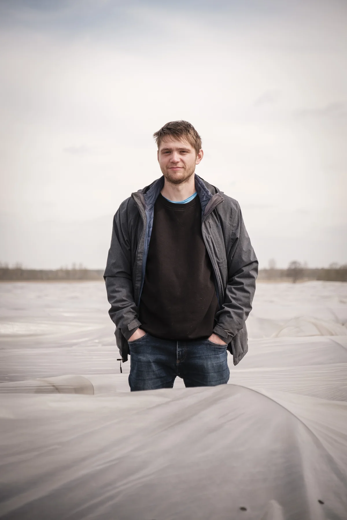 Am Mittag hat sich der Frühling auf 20 Grad aufgewärmt und röstet uns zwischen schwarzen Wärmefolien. Die Saison wurde heute eröffnet. In den nächsten Wochen wird es noch heißer werden. Während Ludwig Straube und ich nicht einmal daran gedacht haben, Wasser mit auf das Feld zu nehmen, zieht Knüppel eine Thermoskanne mit Kaffee aus seinem Rucksack. Er bietet mir eine von zwei Tassen an. „Die habe ich desinfiziert“, sagt er.