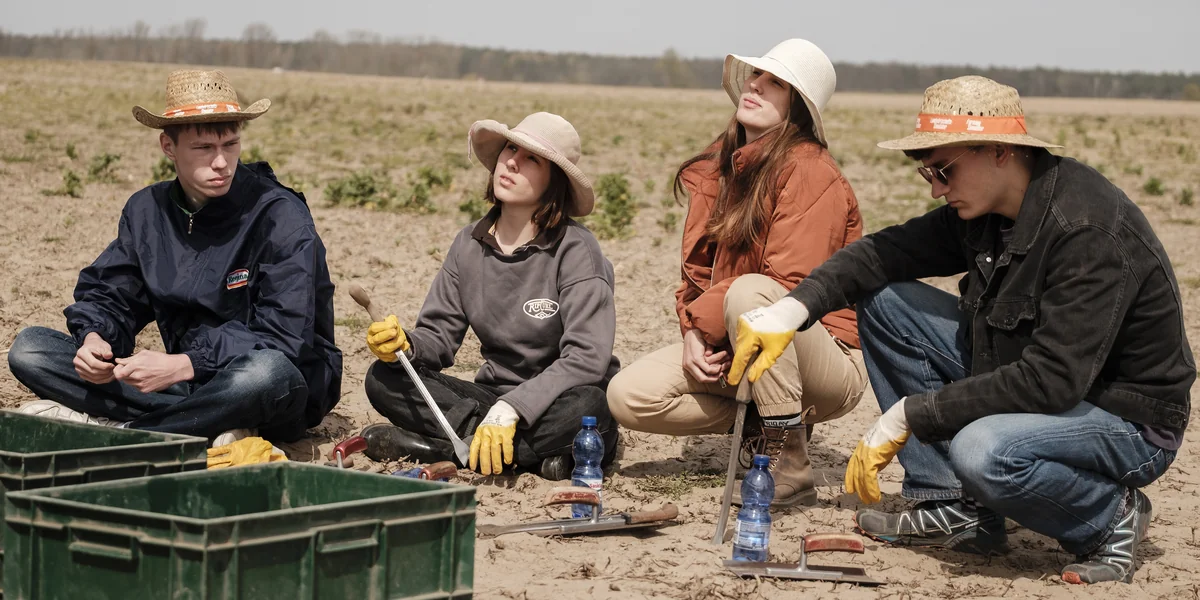 Knüppel ist ein Arbeiter, seine Eltern: eine Erzieherin und ein Polizist, gegen den er immer zu rebellieren versuchte. Straube ist ein Ingenieur auf Jobsuche, seine Eltern sind Musiker:innen, die ihn nach Ludwig von Beethoven benannt haben. Ich bin eine Reporterin mit Uniabschluss und Eltern aus der Krankenpflege. Nun sind wir alle hier auf dem Feld. Wir sind Nummern, deren Köpfe sich einen halben Meter über der Erde auf Augenhöhe begegnen.