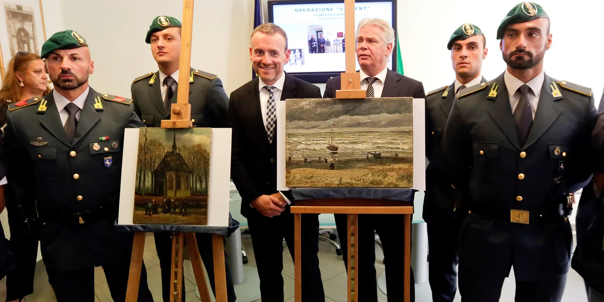 Ein Coup: Die zwei kunsthistorisch bedeutenden Werke „Zeegezicht bij Scheveningen“ (Meeressicht bei Scheveningen) aus dem Jahr 1882 und „Het uitgaan van de Hervormde Kerk te Nuenen“ (Die Kirche von Nuenen mit Kirchgängern) aus dem Jahr 1884/1885, deren Wert auf mehrere Millionen Euro geschätzt wird, sind nach Auskunft des Museums leicht beschädigt, aber in gutem Zustand. Versteckt waren sie in einem Haus, das dem Camorra-Boss Raffaele Imperiale gehört.
