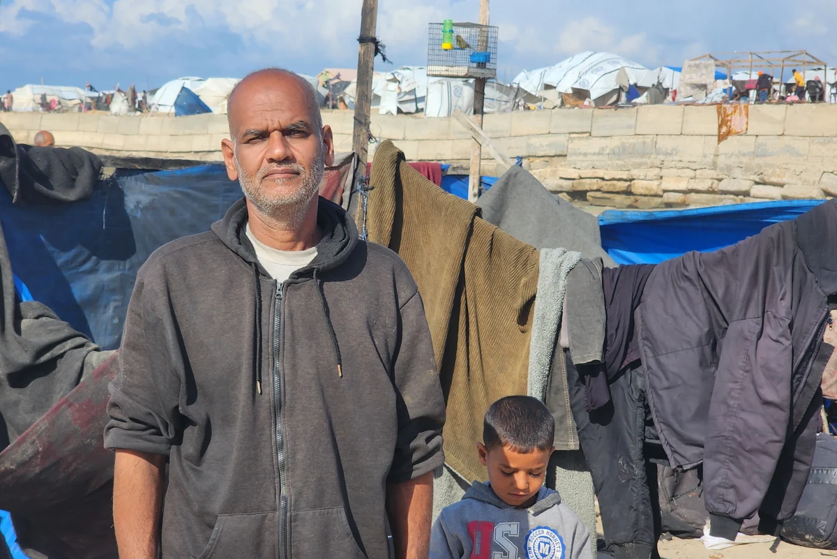 Sein Zelt habe er im Februar gebaut, für sich und seine achtköpfige Familie: die Ehefrau, die fünf Söhne und die Tochter. Für 1.200 Schekel, also etwa 315 Euro, habe er Planen und Holz gekauft. Doch die brennende Sonne im Sommer und der scharfe Wind, der vom Meer nach Gaza hineinweht, habe an seiner Behausung gezehrt. Jetzt regne „es an allen Ecken hinein“, sagt er.