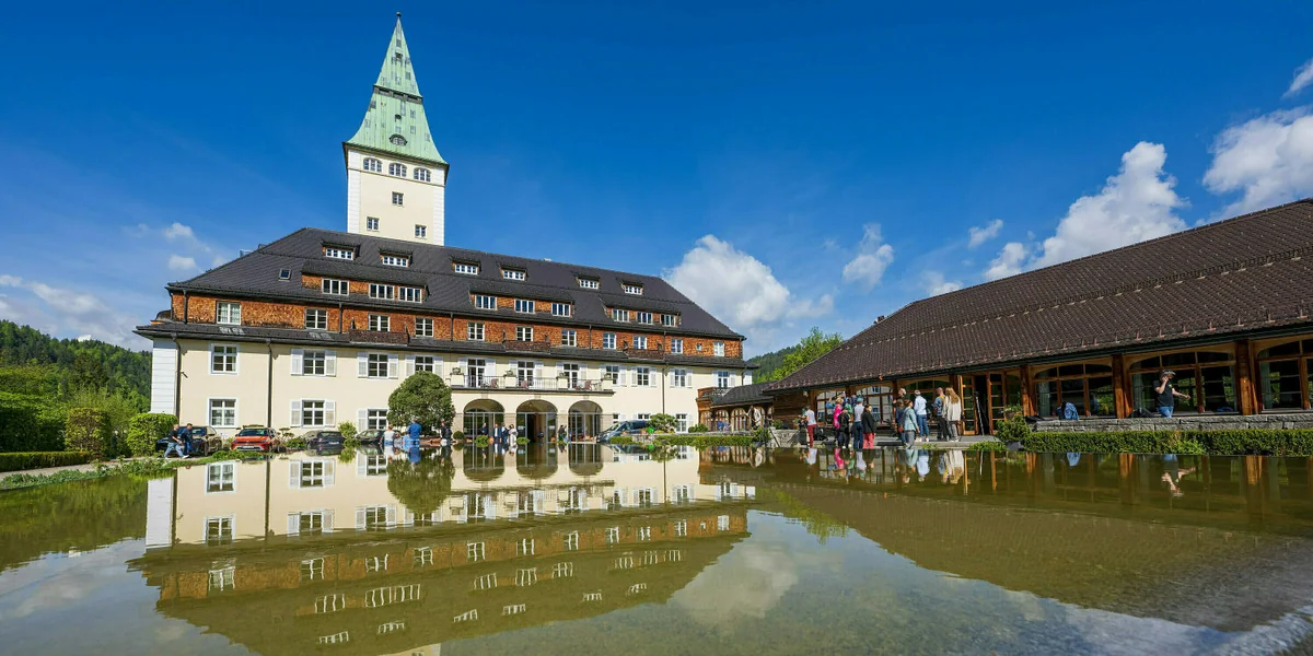 Und jetzt also der G7-Gipfel in Schloss Elmau – einem Schloss wie gemacht für einen Gipfel, obwohl es im Tal liegt. So zumindest sieht das Schlossherr Dietmar Müller-Elmau, der den Gipfel etwas „ganz Tolles“ findet und sagt: „Ich habe dieses Hotel so gebaut, dass es perfekt ist für einen G7-Gipfel.“ Eine Behauptung, die in den Augen der Bundesregierung nicht ganz abwegig zu sein scheint, schließlich hat man sich nach 2015 in diesem Jahr schon zum zweiten Mal für das Schloss als Austragungsort der weltpolitischen Kaminrunde entschieden. Ab Sonntag werden sich hier Joe Biden, Olaf Scholz und Co. treffen – im tiefsten Süden der Republik, nach München sind es etwas mehr als hundert, nach Flensburg etwas mehr als tausend Kilometer.