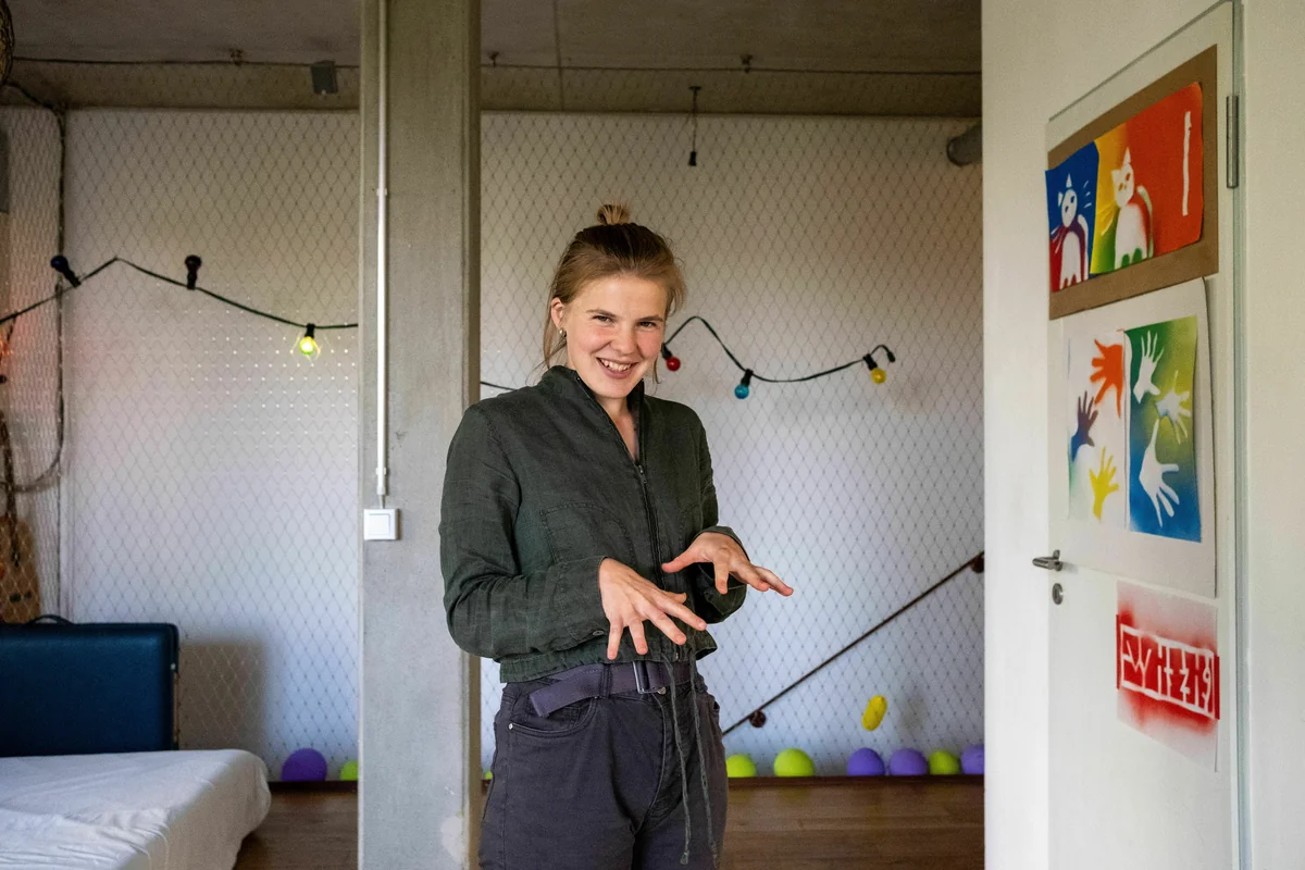 Tochter Laura, heute 22 Jahre alt und immer noch Teil der WG, öffnet die schwere Tür zu den Zimmern der Familie. Sie sind jeweils 14 Quadratmeter groß, ausgestattet mit Möbeln aus der projekteigenen Werkstatt, die sich zwei Etagen tiefer befindet. Viel Platz für Privates gibt es zwar nicht, doch zwischen Büchern, Teetassen und Bilderrahmen sieht es gemütlich aus.