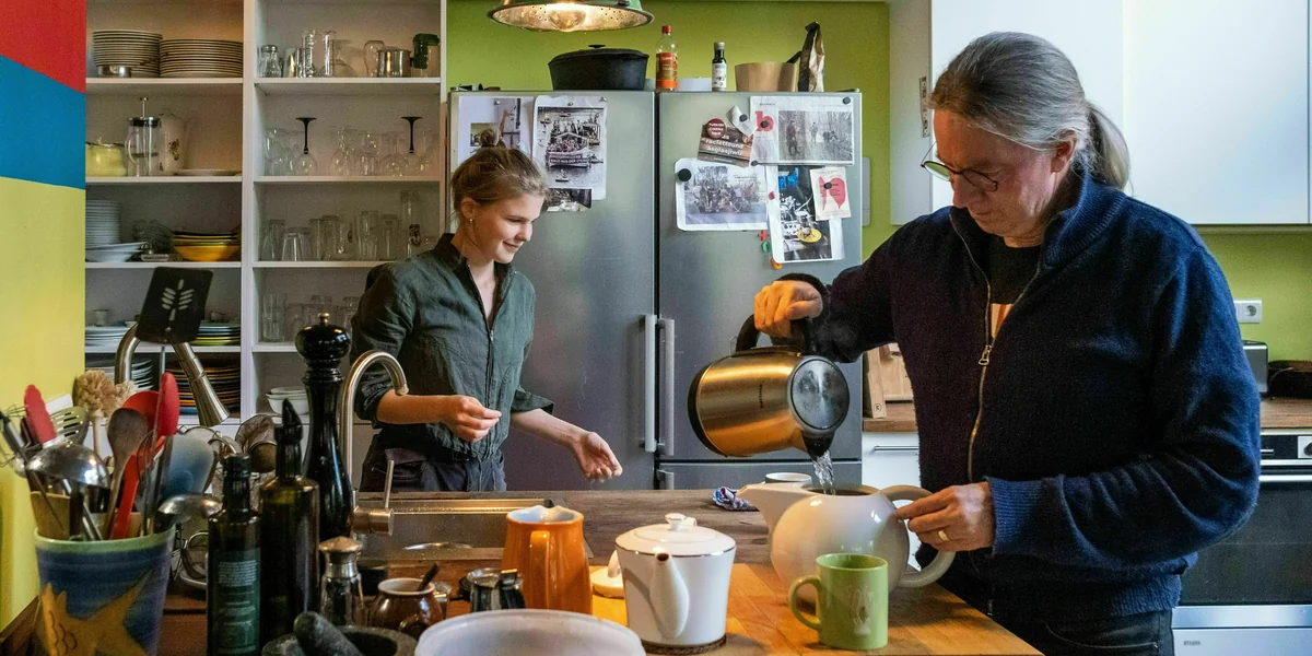 Angelika Drescher ist dennoch zufrieden in der WG. „Das hier war mein Experiment. Ich wollte wissen, ob aus Freunden und Bekannten eine Familie werden kann.“ Die beiden Kinder mit ihren damals 13 und 14 Jahren waren vom Entschluss der Mutter, aus der geräumigen Berliner Altbauwohnung in eine große WG zu ziehen, hingegen schockiert. Laura Drescher schaut ihre Mutter von der Seite an, dann lacht sie und versucht, zu Wort zu kommen, doch die lässt sich nicht beirren. „Die Kinder haben ja von Anfang an gestreikt“, sagt sie, „aber jetzt muss auch ich mir eingestehen, dass ich unsere Kleinfamilie überfordert habe. Wir hatten einfach keinen Raum mehr für uns, kein privates Nest.“