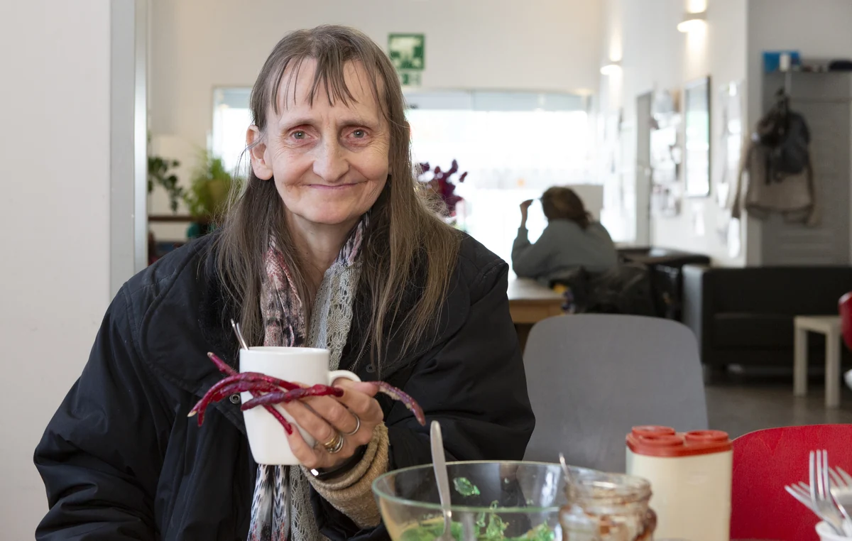 Auf eine Krücke gestützt humpelt Paula* (64) durch den Raum. Nicht nur optisch fällt sie bei Evas aus dem Rahmen. Die langen Haare sind strähnig. Die gekrümmten roten Fingernägel, die sie eigenen Angaben zufolge seit Jahren wachsen lässt, verleihen ihr etwas Unheimliches. Wenn ein Nagel abbricht, klebt sie ihn wieder an. Häufig sei sie schon fotografiert worden, erzählt sie stolz.