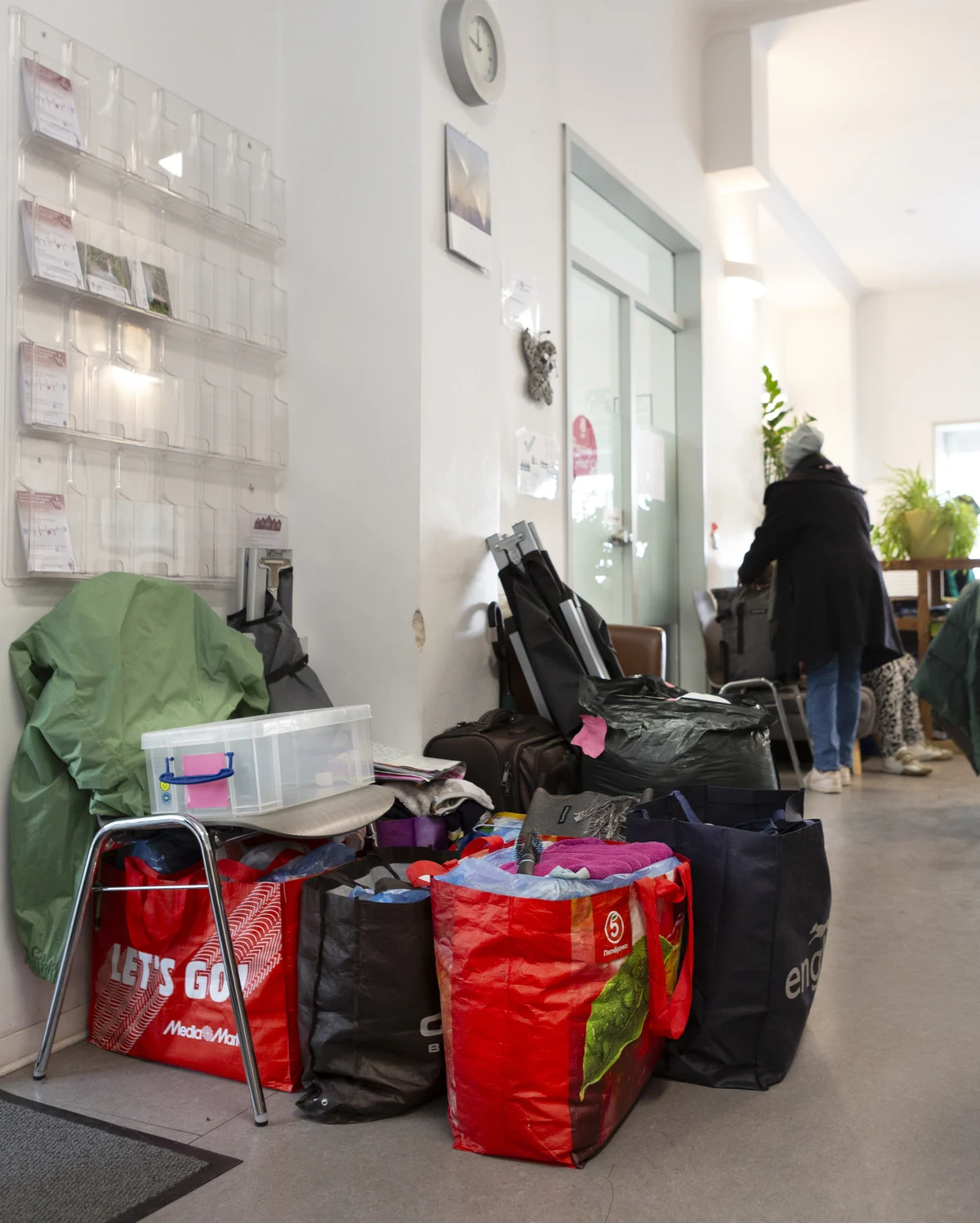 Die Koffer und Taschen der Tagesgäste sind in einer Ecke zusammengestellt. Evas Haltestelle ist eine niedrigschwellige Einrichtung. Jede Frau kann kommen, egal welcher Herkunft. „Wohnungslosigkeit trifft auch gebildete Frauen“, sagt Peiters. Niemand müsse Rechenschaft ablegen. „Wir machen keine Erhebung, bedrängen die Frauen nicht, über ihre Situation zu sprechen“.