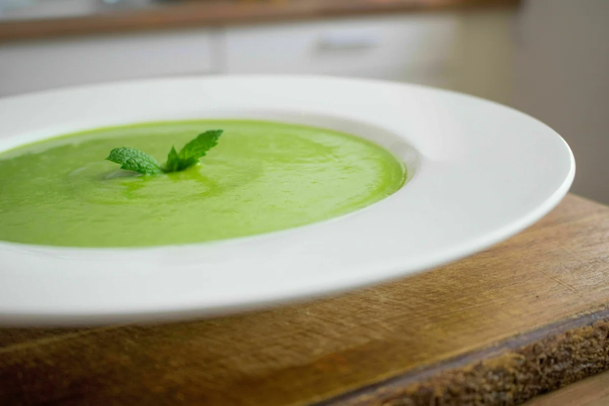 Wenn es warm ist, mache ich eine schnelle Erbsen-Minz-Suppe. Einfach ein paar Erbsen mit kleingeschnittenen Erdäpfeln kurz pürieren, zum Beispiel Nanaminze dazu, etwas Knoblauch, Gemüsesud und Joghurt, salzen und pfeffern. Wer die Sommersuppe für ein Fest aufmotzen will, brät noch eine Garnele oder Jakobsmuscheln an und platziert sie in der Mitte. Vegetarier können dünne, knusprige Rote-Bete-Chips draufpacken.