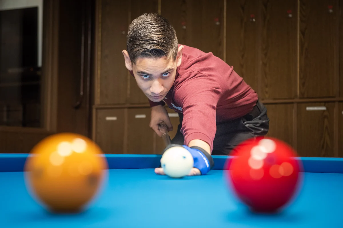 Bis einer sein Spiel so gut zusammenbringt, dass er der Weltelite hier auf Augenhöhe begegnen kann, braucht es normalerweise mehr als 16, 17 Jahre – Amir Ibraimov hat es trotzdem so schnell geschafft. Er ist in einer deutschen Familie mit mazedonisch-kosovarischen Wurzeln groß geworden, in der Billard zum Alltag gehört.