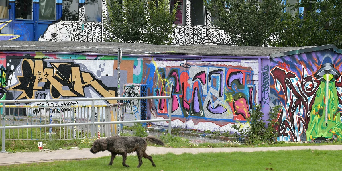 Auch ein krummer Hund ist verdächtig, wenn er extrem ans Alte Sportamt pinkelt Foto: Michael Bahlo