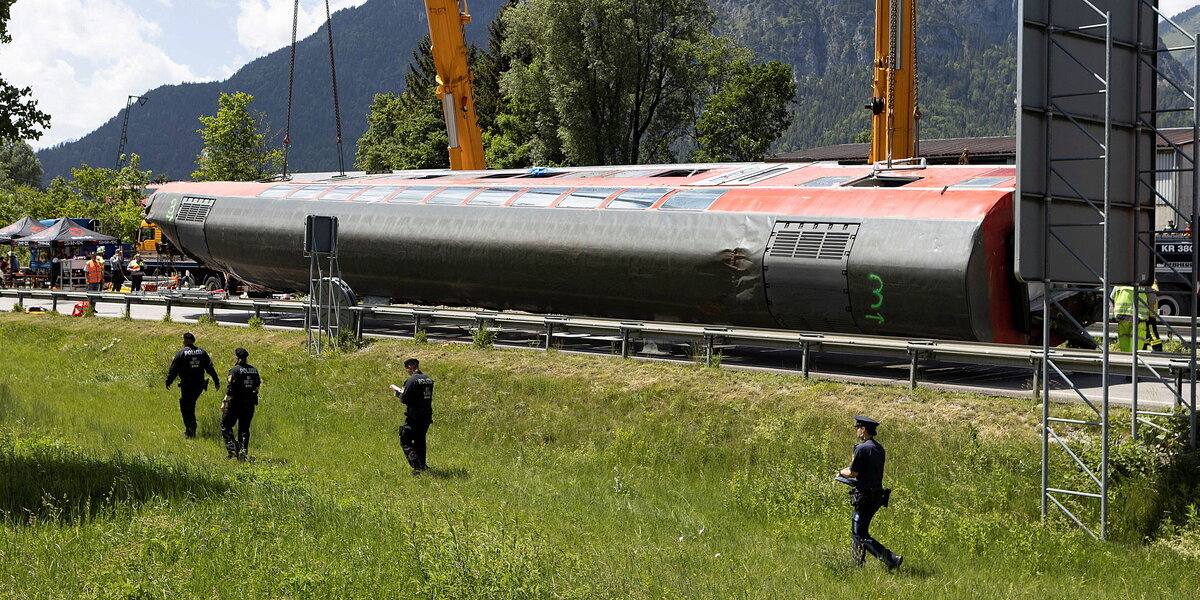 Der Regionalzug von Garmisch-Partenkirchen nach München war am Freitagmittag kurz nach der Abfahrt entgleist. Dabei starben vier Frauen und ein 14-Jähriger aus der Region, rund 40 Menschen wurden verletzt. Eine verletzte Frau befindet sich weiter in einem kritischen Zustand. Unter den getöteten Frauen sind auch zwei Mütter aus der Ukraine, die mit ihren Kindern nach Bayern geflüchtet waren. An der Unfallstelle gingen am Dienstag die Aufräumarbeiten weiter.