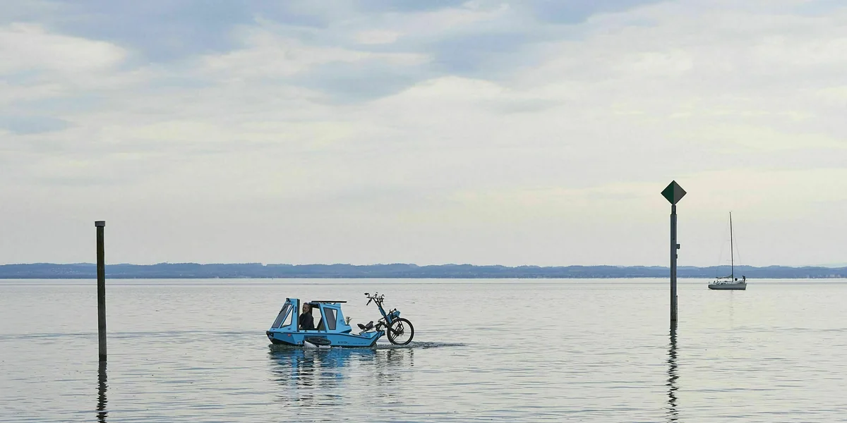Trotzdem haben über 170 Leute das amphibische Lastenrad vorbestellt, erzählt Aigars Lauzis. Ein paar fahrradbegeisterte Campingfreaks mit Geld scheint es also zu geben. In Arbon am Schweizer Ufer des Bodensees kann man das Betriton bald auch für ein paar Tage mieten. Dort haben Lauzis und seine Kollegen gerade die ersten Räder abgeliefert. Ich werde mit dem Van vorbei am Bodensee und weiter Richtung Süden fahren.