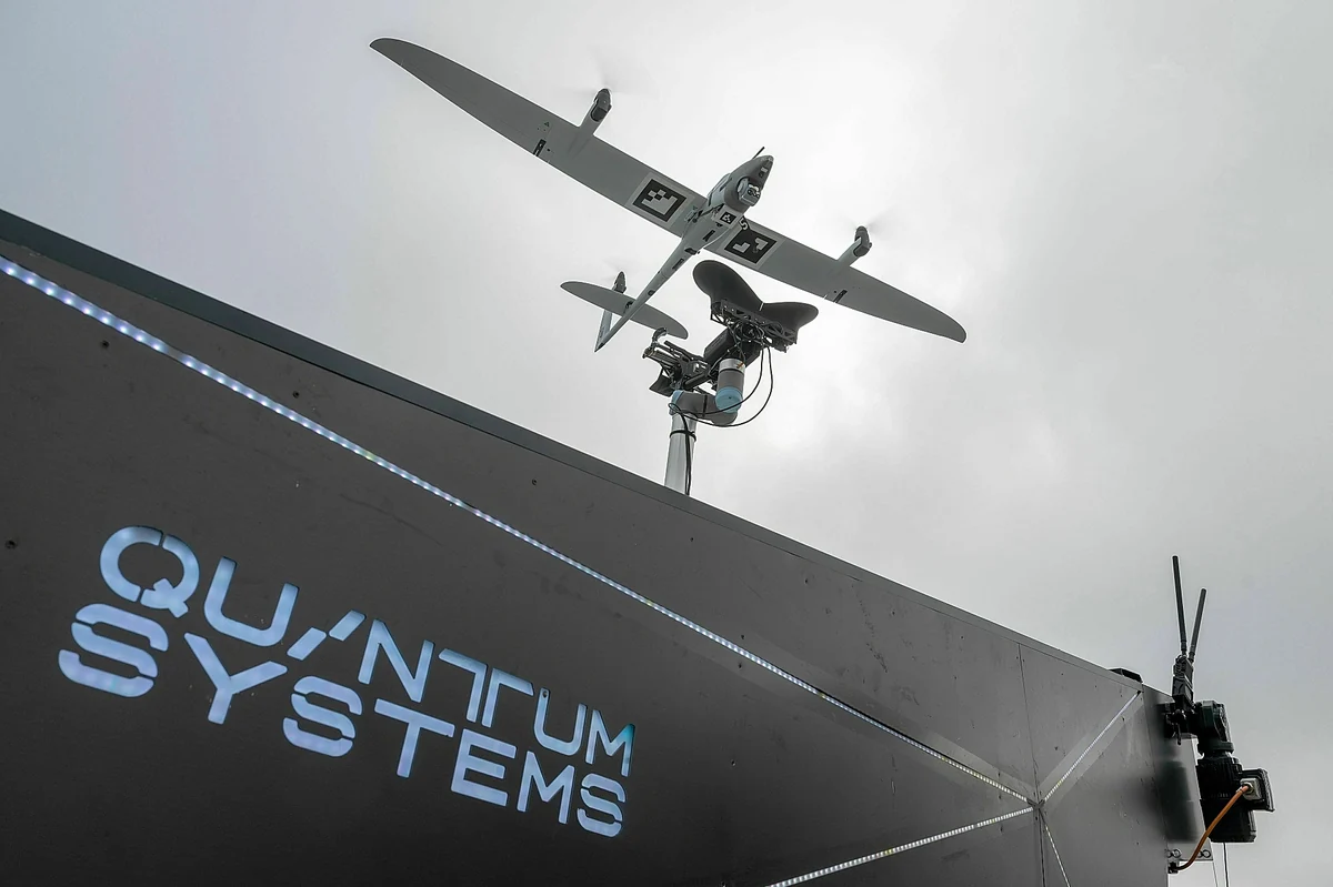 Es ist ein unscheinbarer Koffer, den die Firma Liebherr auf der prominent besuchten Leistungsschau von Rüstungsunternehmen präsentiert. Nicht viel größer als ein Handgepäckstück, zwei Akkus passen hinein. Es ist eine Ladestation für Drohnen des bayrischen Rüstungs-Startups Quantum Systems. Über das Ladegerät kann die Aufklärungsdrohne des Typs „Vektor“, die auch in der Ukraine zum Einsatz kommt, mobil mit Strom versorgt werden.