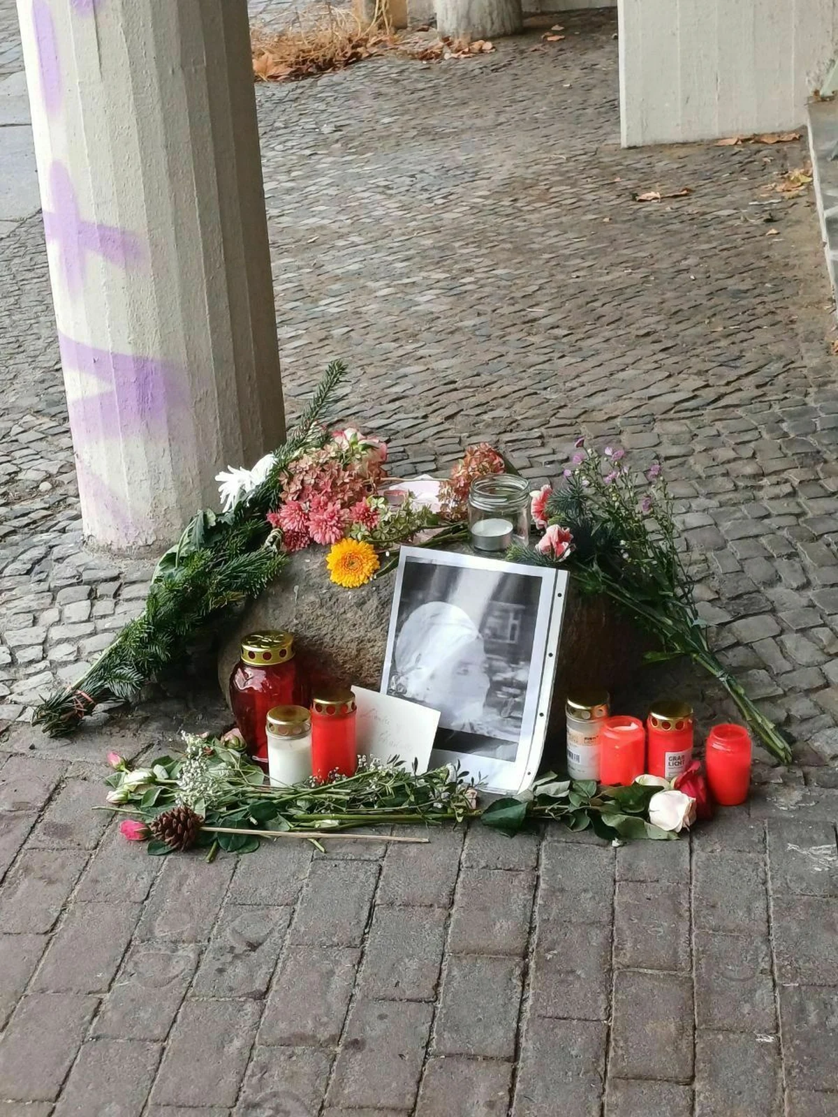 Charlotte Matthiesen ist am Freitag, 28. November 2025, verarmt in ihrer Wohnung verstorben. Zu ihrem Gedenken richtete eine Nachbarin vor dem Haus einen Trauerstein ein und schmückte ihn mit Grünzeug, Kerzen und Grußkarten an Charlotte. Seither bleiben immer wieder Anwohner_Innen dort stehen, fragen nach ihr, verleihen ihrer Trauer Ausdruck, erzählen einen ihrer witzigen Kalauer. Nach und nach wird deutlich, welchen Eindruck Matthiesen hinterlassen hat. Die Schauspielerin und Aktivistin der Frauenbewegung wird im Kiez fehlen.
