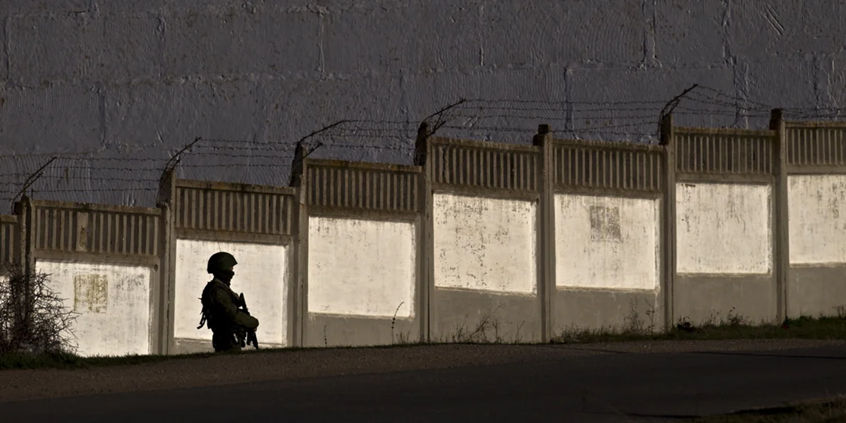 Einem ukrainischen Soldaten standen Tränen in den Augen, als er die Basis verließ und die Fahne sah. Rund 200 prorussische Aktivisten und Vertreter russischer Streitkräfte hatten das Gebäude zuvor umstellt, Schüsse fielen nicht.