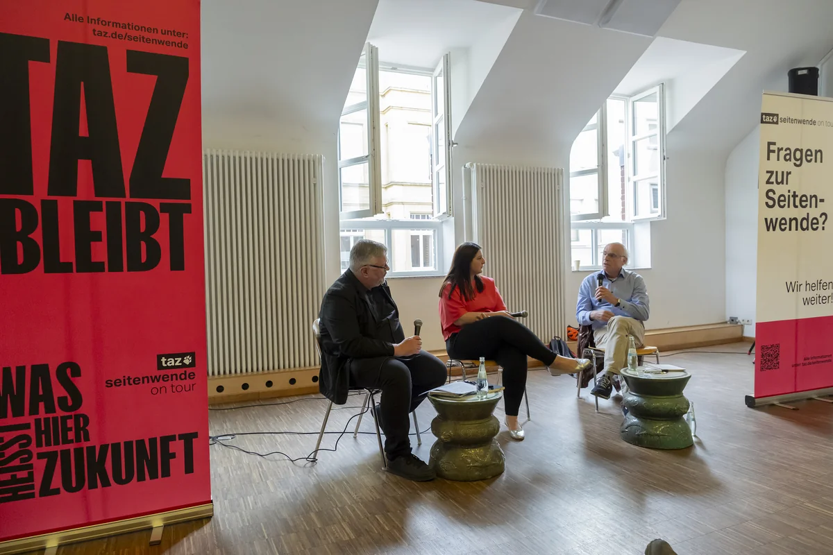 Als Genossenschaft gehören wir unseren Leser:innen. Und unser Journalismus ist nicht nur 100 % konzernfrei, sondern auch kostenfrei zugänglich. Alle Artikel stellen wir frei zur Verfügung, ohne Paywall. Gerade in diesen Zeiten müssen Einordnungen und Informationen allen zugänglich sein. Unsere Leser:innen müssen nichts bezahlen, wissen aber, dass kritischer, unabhängiger Journalismus nicht aus dem Nichts entsteht. Dafür sind wir sehr dankbar. Damit wir auch morgen noch unseren Journalismus machen können, brauchen wir mehr Unterstützung. Unser nächstes Ziel: 50.000 – und mit Ihrer Beteiligung können wir es schaffen. Setzen Sie ein Zeichen für die taz und für die Zukunft unseres Journalismus. Mit nur 5,- Euro sind Sie dabei! Jetzt unterstützen