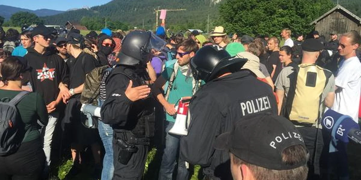 Kurzer Blick zurück auf die Demos am Samstag. Die Polizei hat mehrere Gipfelgegner festgenommen. Diese seien in eine eigens für den Gipfel eingerichtete Gefangenensammelstelle gebracht worden, sagte eine Polizeisprecherin am frühen Sonntagmorgen. Eine Zahl nannte sie nicht. Details würden am Sonntagvormittag bekanntgegeben. Das Aktionsbündnis „Stop G7 Elmau“ schrieb auf Twitter von mindestens acht Personen. Anwälte suchten nun Kontakt zu den Festgenommenen. (dpa)