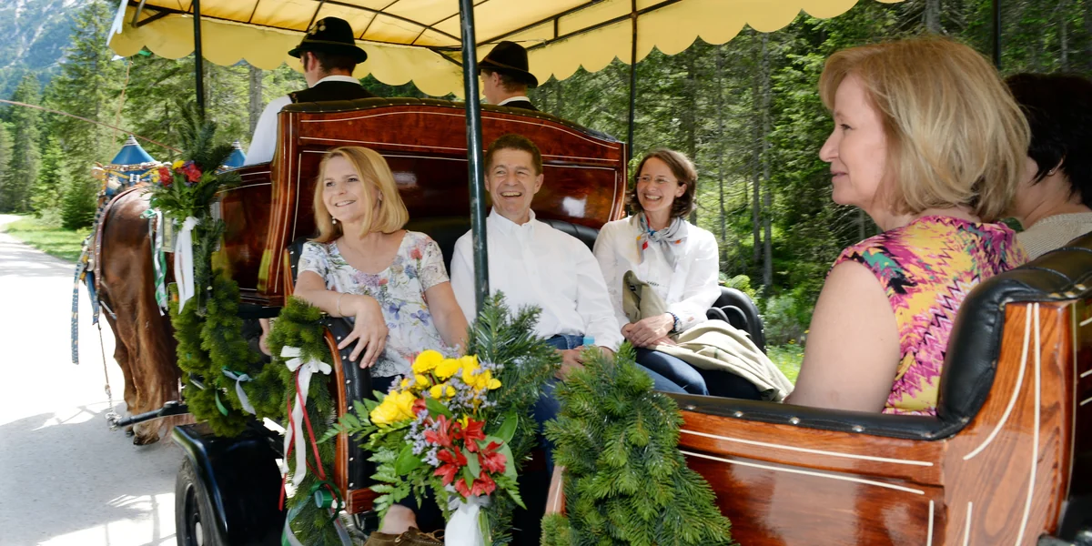 Aber die einschlägigen Gazetten werden sicher gern den Kutschfahrt-Kitsch von Elmau zeigen. Wir präsentieren das Bild natürlich aus reiner Chronistenpflicht. (hav)
