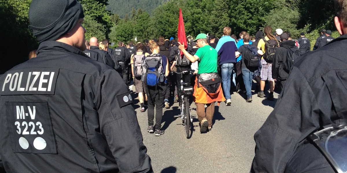 Am Samstag haben weit mehr als 4.000 Menschen in Garmisch-Partenkirchen gegen das anstehende Treffen protestiert. Wie viele Menschen am Sonntag insgesamt demonstrieren ist unklar, noch gibt es keine offiziellen Zahlen. Die Schätzungen unserer Reporter im Überblick: Radfahrerdemo: 40 TeilnehmerInnen, Route 2 + 3 : 350 bis 400 TeilnehmerInnen insgesamt. Und wo ist der Rest? Im Wald hat er sich eher nicht abgesetzt. Zumindest auf Route 3 waren alle Alternativwege verstellt. Hundertschaften des bayerischen Unterstützungskommandos sind in den Wäldern unterwegs. (fot/epe/sb)