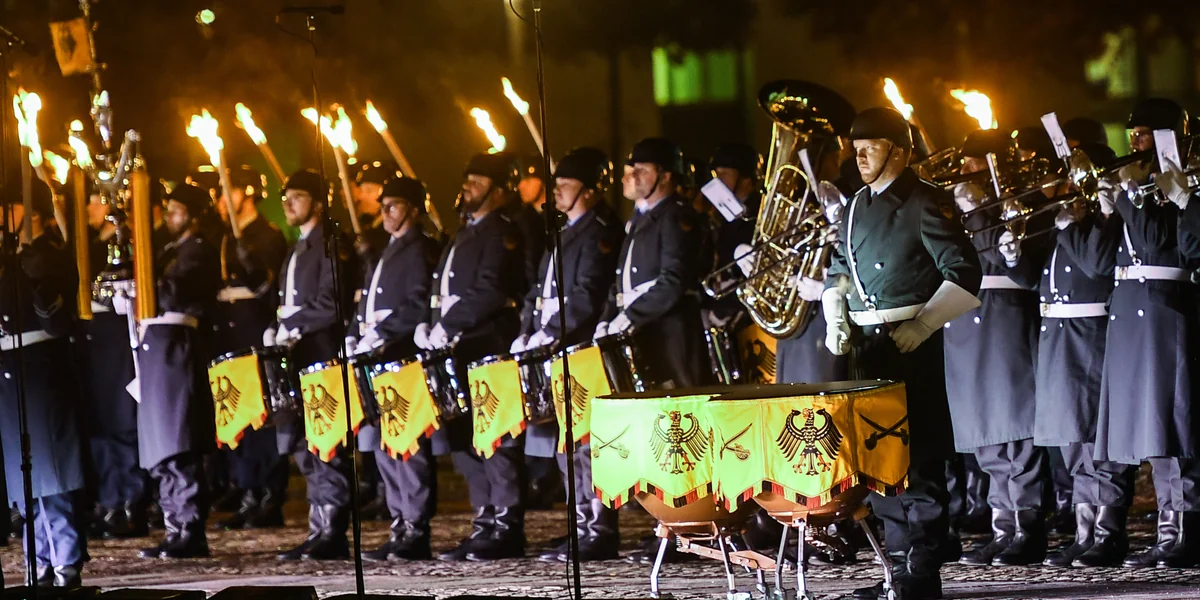 Da war bloß noch zu hoffen, dass das Stabsmusikkorps sich bei der Notenauswahl nicht vergreifen würde. „Für mich soll's rote Rosen regnen“ hat Hildegard Knef nämlich nicht immer allein gesungen, sondern 1993 auch mal mit der NDW-Band „Extrabreit“ – und das klingt doch ein bisschen wilder.